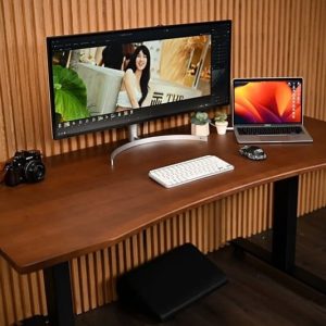 2. Mặt bàn gỗ Ash với thiết kế phẳng hoặc vát cong, giúp thoải mái khi làm việc