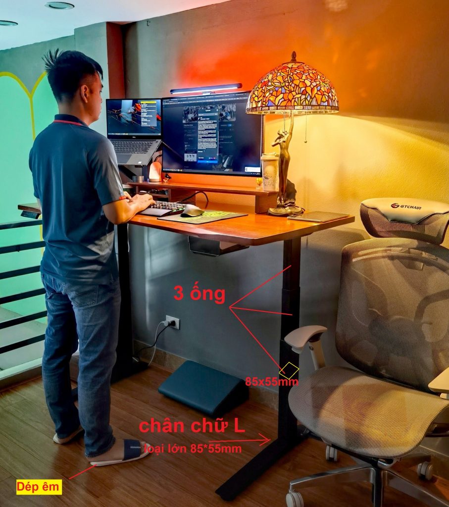 Dù bạn không dùng tính năng đứng để làm việc, bàn nâng hạ vẫn hơn vé tập gym ở chỗ là bạn sẽ set được chiều cao mặt bàn thích hợp với chiều cao của bạn. (Trừ khi bạn mua bàn loại bàn nâng hạ 2 ống – lát mình sẽ nói sau)