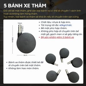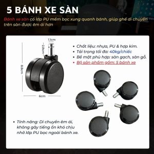 Các loại bánh xe dành cho ghế văn phòng tại DandiHome: