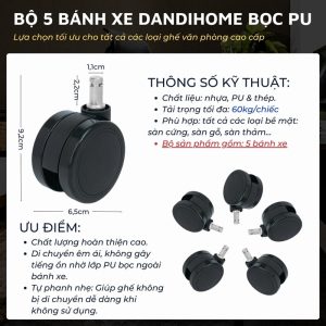 Các loại bánh xe của DandiHome đều có tính năng “tự phanh nhẹ” – giúp ghế không dễ dàng bị dịch chuyển khi không sử dụng.