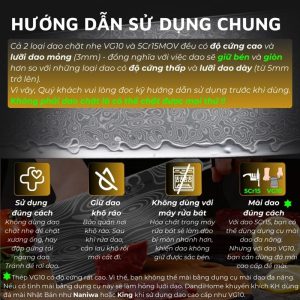 - VG10 thì cứng hơn, khó mài hơn một chút. Nhưng điều này làm cho nó trở thành một lựa chọn phổ biến cho dao và dụng cụ cắt chuyên nghiệp.