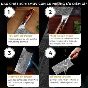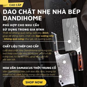 - Dao chặt nhẹ DandiHome được rèn bằng thép 5Cr15MOV hoặc VG10 cao cấp. Có thiết kế tối ưu công thái học