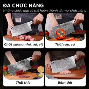 - Dao có thể sử dụng đa chức năng. Mang đến sự tiện lợi tuyệt đối. Chặt xương, thái rau củ,…