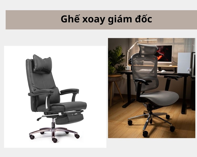 Ghế xoay giám đốc dạng da và dạng lưới.