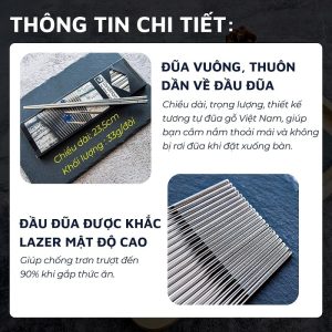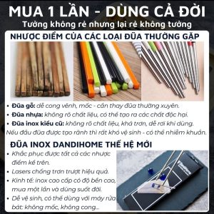 Đũa Inox 304 DandiHome 23,5cm (hộp 10 đôi) Chống Trơn Trượt 90%