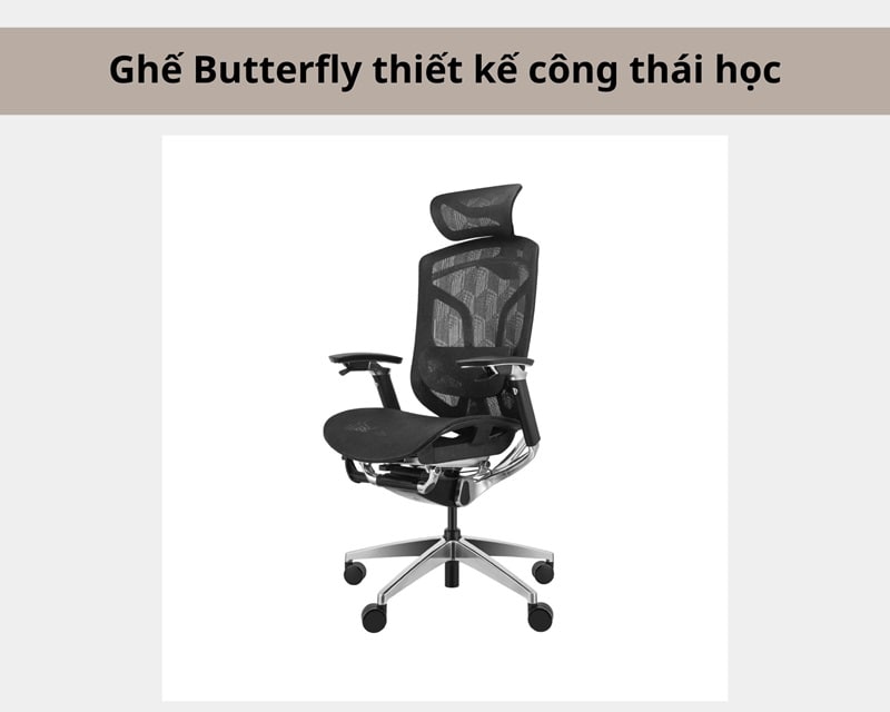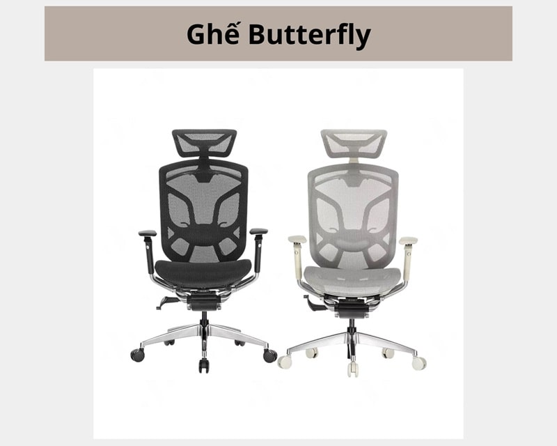 Ghế công thái học butterfly là dòng ghế công thái học cao cấp, nổi bật với phần lưng ghế thiết kế uốn lượn như cánh bướm – đúng như tên gọi “butterfly”. Phần tựa lưng này có khả năng ôm trọn cột sống, hỗ trợ theo từng chuyển động của người ngồi, giúp giảm áp lực lên đốt sống cổ, lưng và thắt lưng. Ngoài ra, ghế còn có khả năng điều chỉnh linh hoạt về độ cao, độ ngả và tựa đầu, mang lại cảm giác thư giãn suốt cả ngày dài.