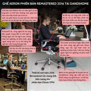 Công nghệ tiên tiến kết hợp với kiến thức sâu rộng về thiết kế. Với cảm hứng lấy con người làm trung tâm từ phiên bản Classic 1994. Ghế Aeron phiên bản mới Remastered ra mắt năm 2016 có khả năng điều chỉnh đa dạng. Có thể kể đến từ chiều cao, tay ghế, độ sâu, độ ngả lưng.