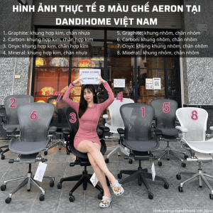 Thực tế, màu sắc của ghế Aeron hơi khó phân biệt trong phòng vì ánh sáng không chuẩn. DandiHome đã làm video chi tiết về 8 phiên bản của ghế Aeron dưới ánh sáng mặt trời, để các bạn có thể chọn ra màu phù hợp với nhất: