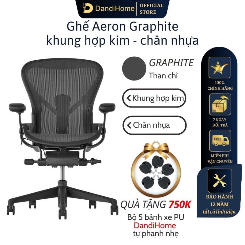 - Nâng cấp miễn phí từ bánh xe nhựa (di chuyển gây ồn) lên bánh xe DandiHome bọc PU tự phanh nhẹ cho khách hàng mua ghế Aeron Herman Miller.