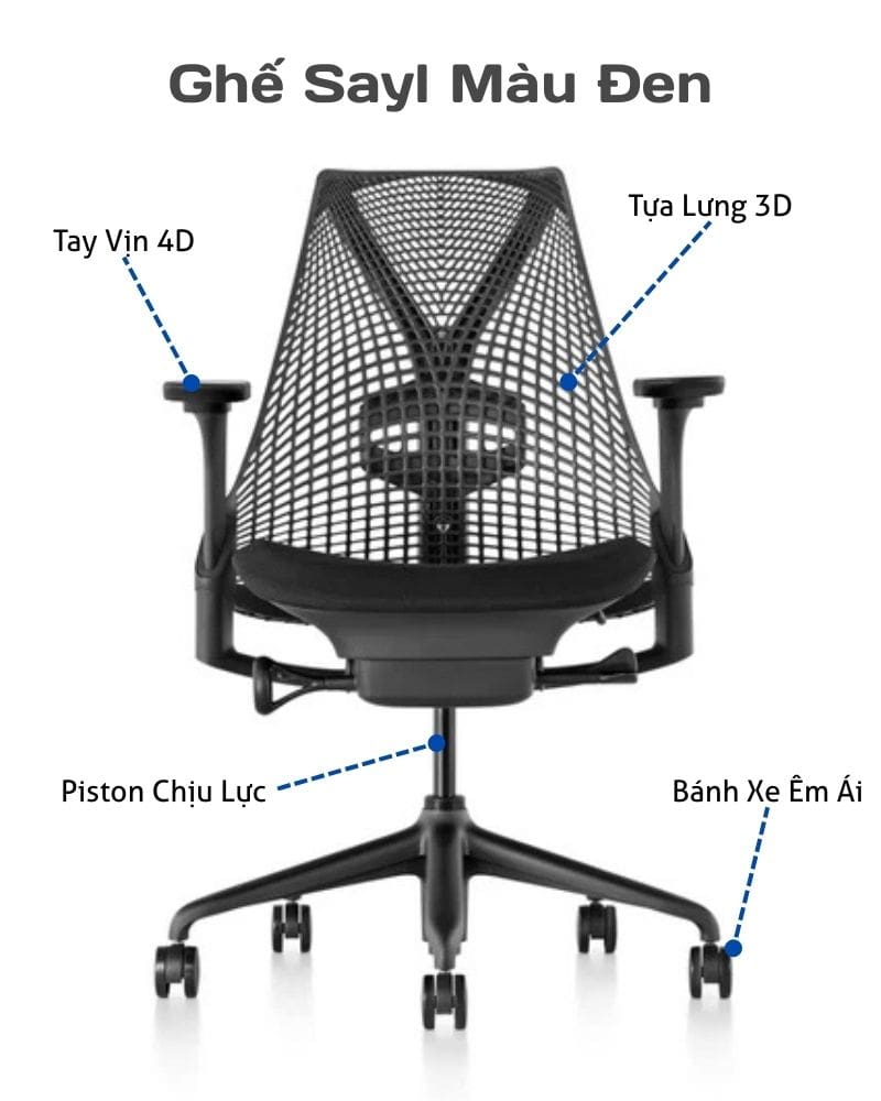 Ghế Herman Miller Sayl Màu Đen chính là sự lựa chọn hoàn hảo giúp bạn nâng tầm không gian làm việc, tăng hiệu suất và bảo vệ sức khỏe lâu dài.
