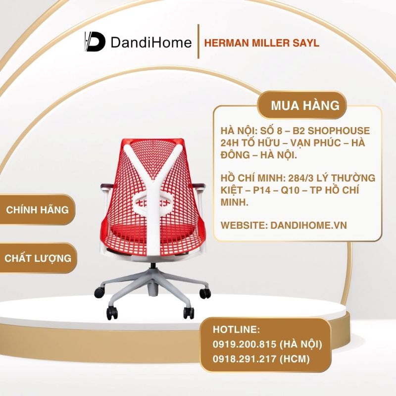 Với mức giá cạnh tranh và dịch vụ tận tâm của DandiHome, ghế Herman Miller Sayl Màu Đỏ là lựa chọn hoàn hảo cho những ai muốn sở hữu một sản phẩm nội thất cao cấp, bền bỉ và chuẩn công thái học.