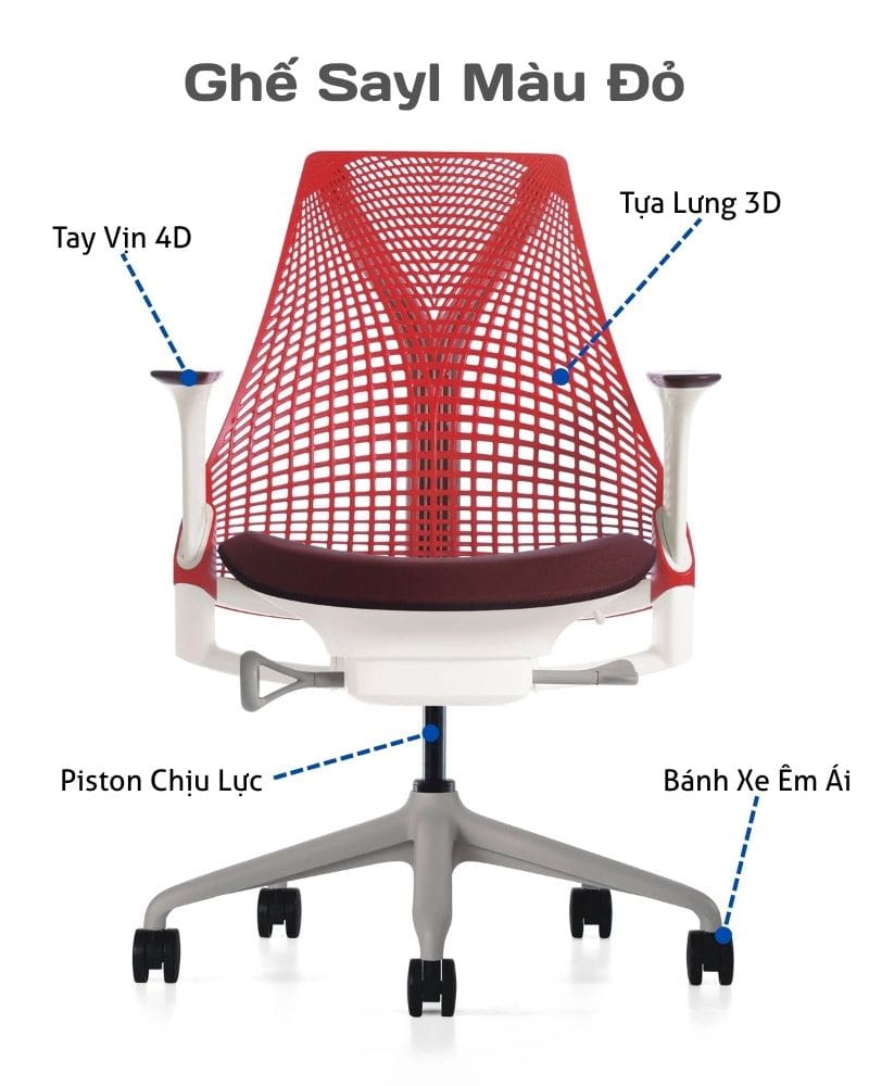 Ghế Herman Miller Sayl Màu Đỏ không chỉ là một chiếc ghế công thái học thông thường mà còn là biểu tượng của sự sáng tạo, năng động và chăm sóc sức khỏe người dùng. Màu đỏ nổi bật giúp không gian làm việc thêm phần sinh động, kích thích tinh thần làm việc và sáng tạo.