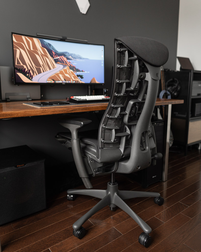 Ghế Embody Gaming Chair được thiết kế dựa trên nghiên cứu của hơn 30 chuyên gia về cơ sinh học, thị lực, vật lý trị liệu và công thái học, nhằm tạo ra một chiếc ghế vừa đẹp mắt vừa tối ưu cho sức khỏe người dùng. Phiên bản hợp tác với Logitech G mang đến điểm nhấn màu đen mạnh mẽ, hiện đại, phù hợp với không gian gaming chuyên nghiệp.