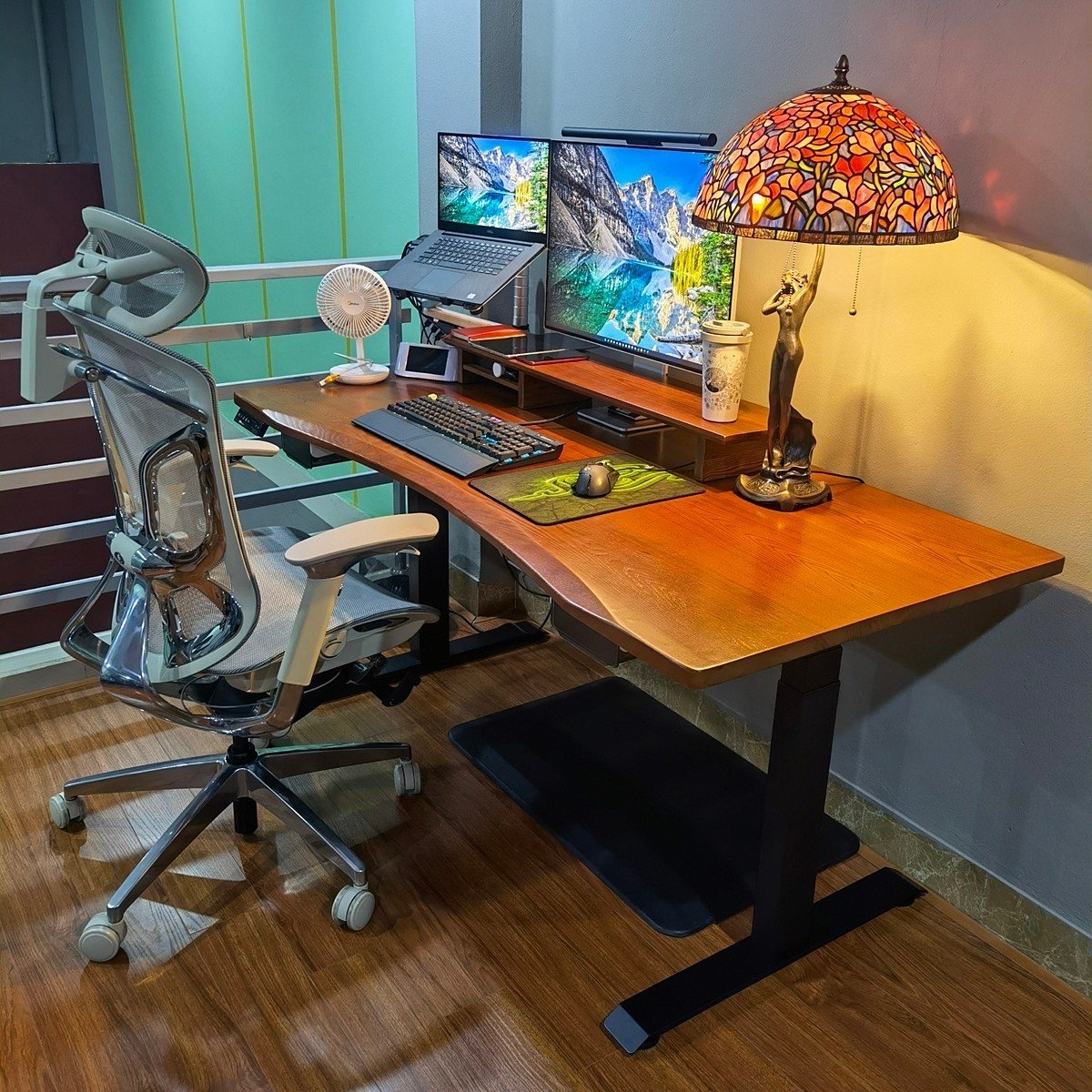 Là phiên bản bàn nâng hạ tích hợp đầy đủ tính năng tiện ích dành cho người dùng hiện đại. Sản phẩm kết hợp mặt bàn và chân bàn đồng bộ, đi kèm với ngăn kéo lưu trữ, bộ sạc không dây tiện lợi và cảm biến va chạm an toàn. Bàn còn được trang bị bánh xe giúp dễ dàng di chuyển trong không gian làm việc. Mặt bàn có kích thước 120x60cm, phù hợp với người dùng cần sự gọn gàng nhưng vẫn đầy đủ tiện nghi hỗ trợ công việc hàng ngày.