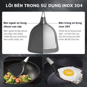 • Bên trong muỗng là lõi inox 304, giúp dễ dàng lật hay xào nấu thức ăn. Không bị mềm như 1 số mẫu trên thị trường.