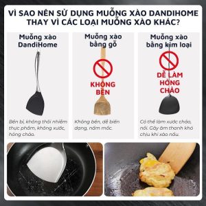 • Muỗng xào đa năng DandiHome sử dụng chất liệu Inox 304 để làm cán và lõi bên trong.