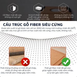 Từ đó tạo ra vật liệu gỗ fiber với tính cơ học vượt trội: cứng, chịu nước tốt, không co ngót… nhưng vẫn thân thiện với dao.